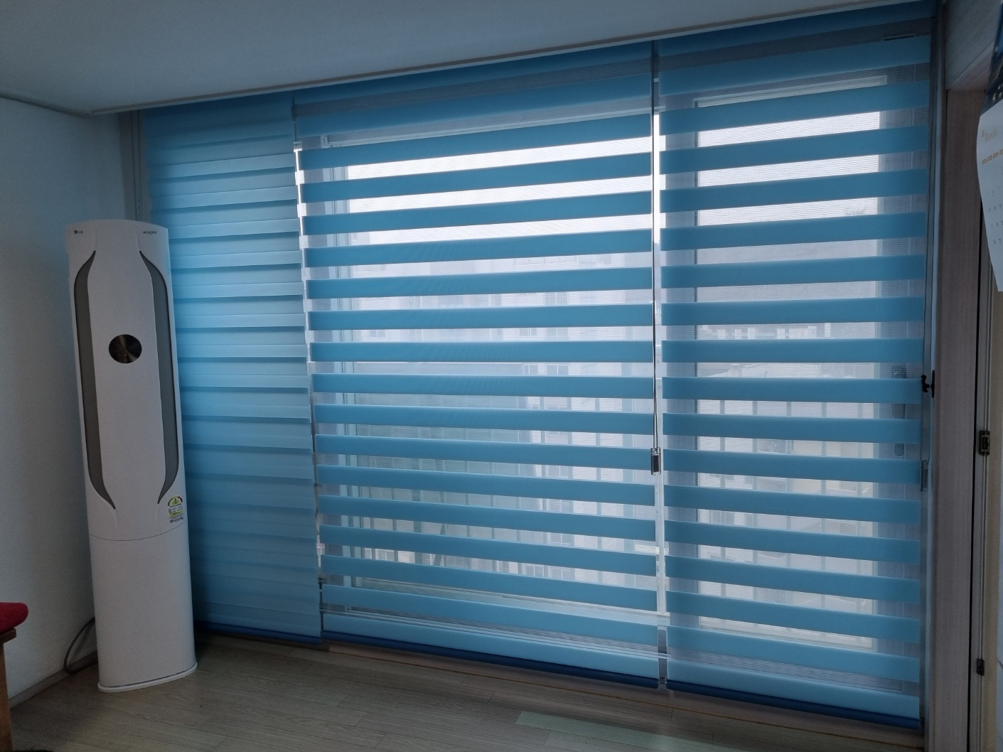 직접 고르신 하늘색, 분홍색 커튼입니다~집이 정말~환해졌죠?