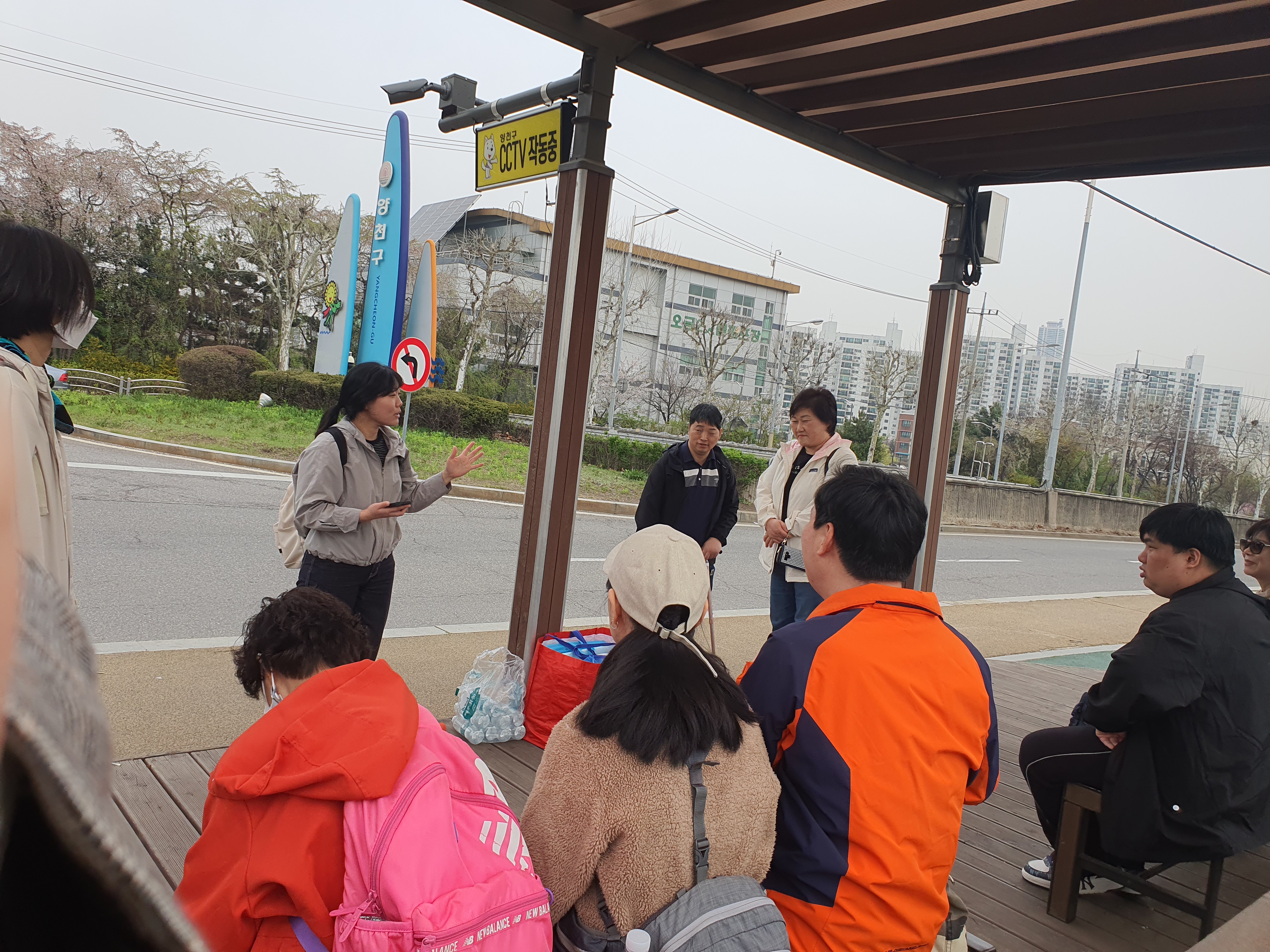 벚꽃길을 걷기 전! 간단한 안내사항과 오늘의 조 안내 후 출발하였습니다.