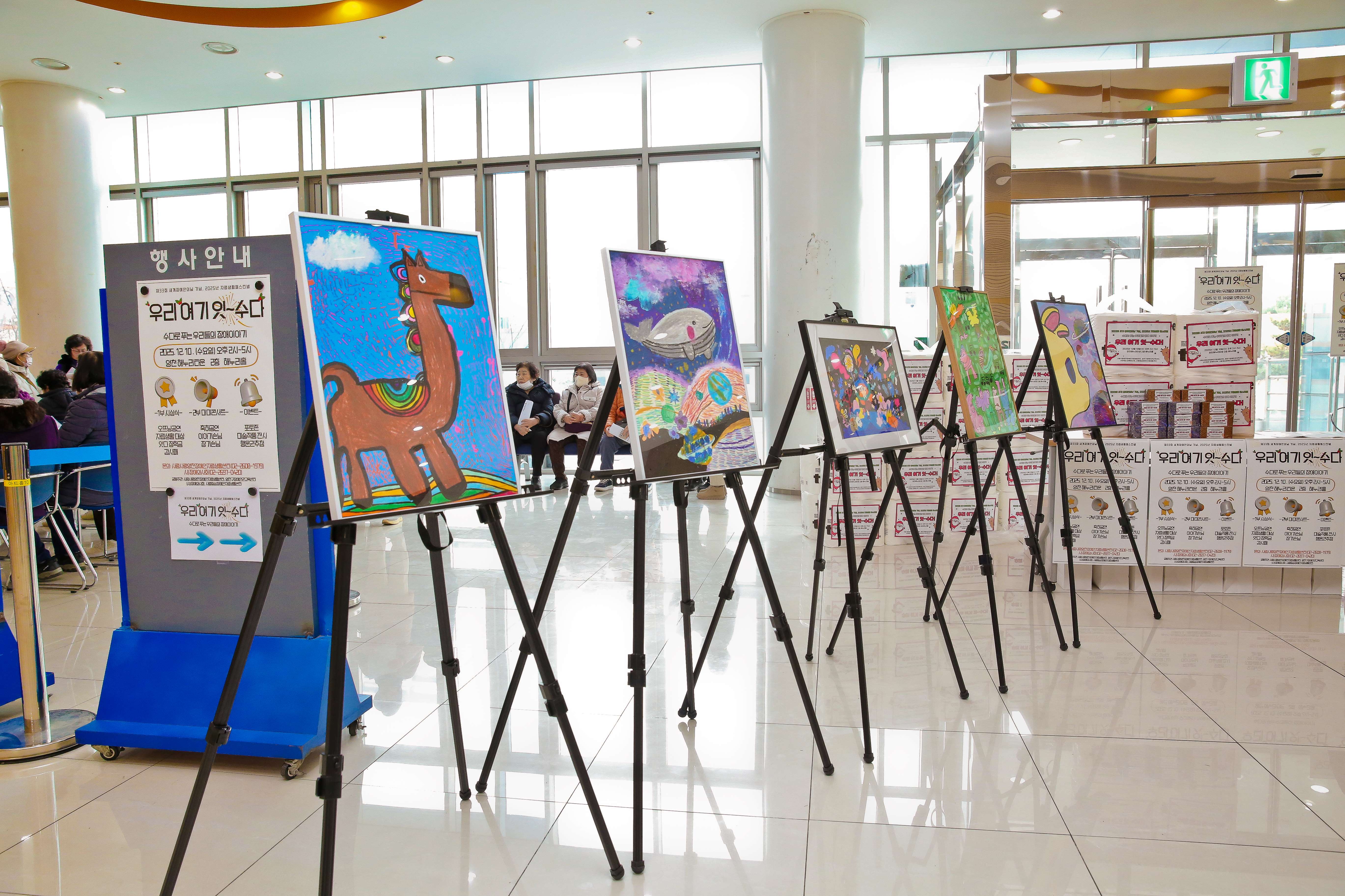 그 뿐만 아니라, 로비에서는 장애인당사자의 미술 작품 전시와 당사자의 그림으로 꾸민 포토존, 당사자가 직접 운영하는 미니까페가 마련되어, 참여자들이 미술 작품을 감상하고, 이야기 나누며, 즐거운 추억을 남기는 시간도 이어졌습니다!